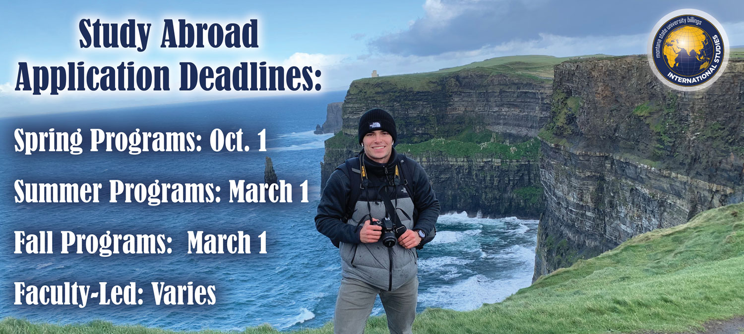 Travel abroad and earn credit with an MSUB faculty and group of your peers. These programs are connected to specific MSUB courses with programs and destinations changing annually. Trips abroad average about 2 weeks.