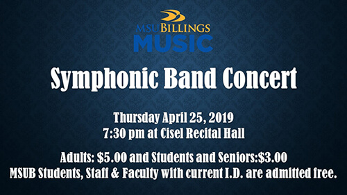 MSU BILLINGS NEWS — The Montana State University Billings Symphonic Band and Brass Ensemble will perform their spring concert on Thursday, April 25 at 7:30 p.m. in Cisel Hall on the MSU Billings campus.