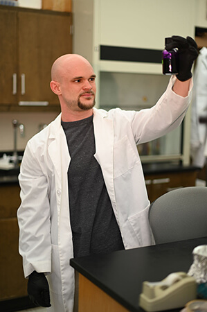“Cody is a unique student. I think his life experiences have given him a perspective and drive that many students lack. He has a higher academic standard than any other student that I have had the privilege of working with,” shares George. “Moreover, Cody is not satisfied with memorizing information for the sake of performing well on an exam. In both my lab and the classroom, he consistently makes a clear effort to understand the conceptual underpinnings of the subject at hand. He is genuinely passionate about achieving a deeper understanding of science and the world around him.”