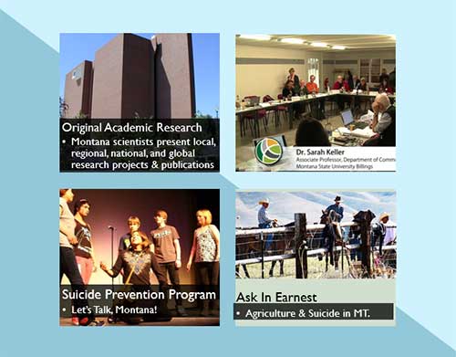 MSU BILLINGS NEWS—Several Montana State University Billings faculty members and community mental health experts will participate in a day-long lecture series highlighting suicide in eastern Montana on May 31. Speakers at the event will present their latest research in collaboration with Montana Social Scientists, an organization aimed at providing continuing education (CE) credits for Montana counselors and teachers licensed by Montana’s Board of Behavioral Health and the Office of Public Instruction.