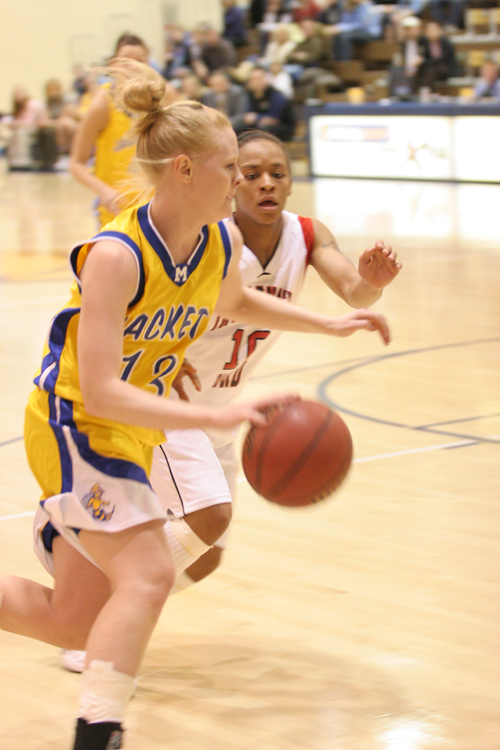 A three-point conversion by the Jackets’ Michelle Lieber (Gillette, WY) eight minutes into the half put MSUB up by four.  On the next possession the Cards’ leading scorer Nia Torru hit a 3-pointer to check the Jackets lead to one.  Trading buckets, the Yellowjackets steadily built their lead to 10 on back-to-back free throws by Shantell Marquis (Cascade, MT).  A Yellowjacket 3-pointer by Carpenter with four seconds remaining in the half sent MSUB to the locker room holding the 13-point advantage.