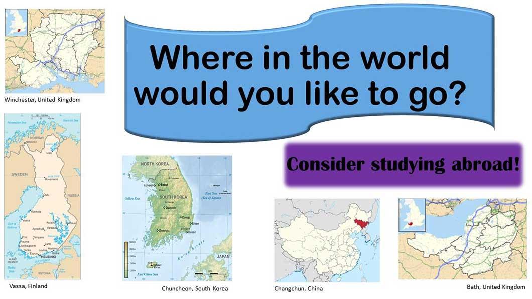Students who study abroad are able to transfer earned credits directly back to MSUB. Moreover, students can utilize their Financial Aid packages to study abroad and can apply for additional scholarships! For detailed information, please contact the Office of International Studies (LA 700) to participate in travel and study abroad opportunities. To add the International Studies Minor, contact Modern Languages.