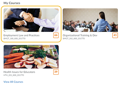 - After logging into D2L, you will be on the My Home screen. Your courses will be displayed