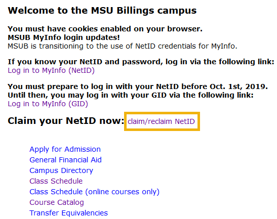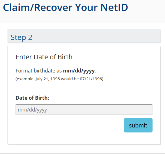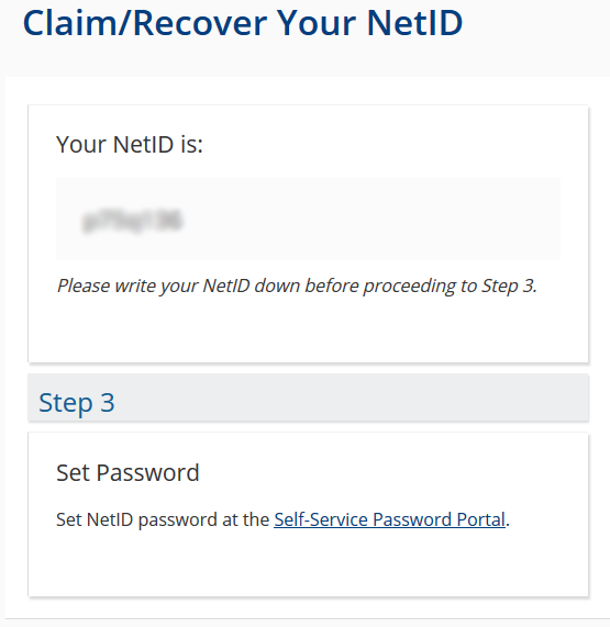 - Once there, click on the big button suggesting you "claim/reclaim [your] NetID".