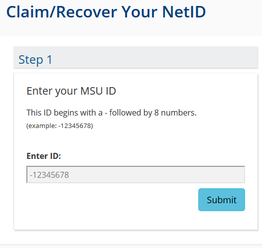 - Enter your Student ID (also known as your GID or MSU ID) on the following page (yes,