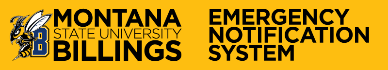 Timely Warnings may be sent via email, text message, MSUB Facebook and Twitter accounts, and will show up on MSUB’s website as a yellow horizontal band describing the nature of the issue. A text message will be sent to the mobile number and/or your email address you specify in Banner (MSUB students and employees) or enter in the Emergency Notification System (as a community member).