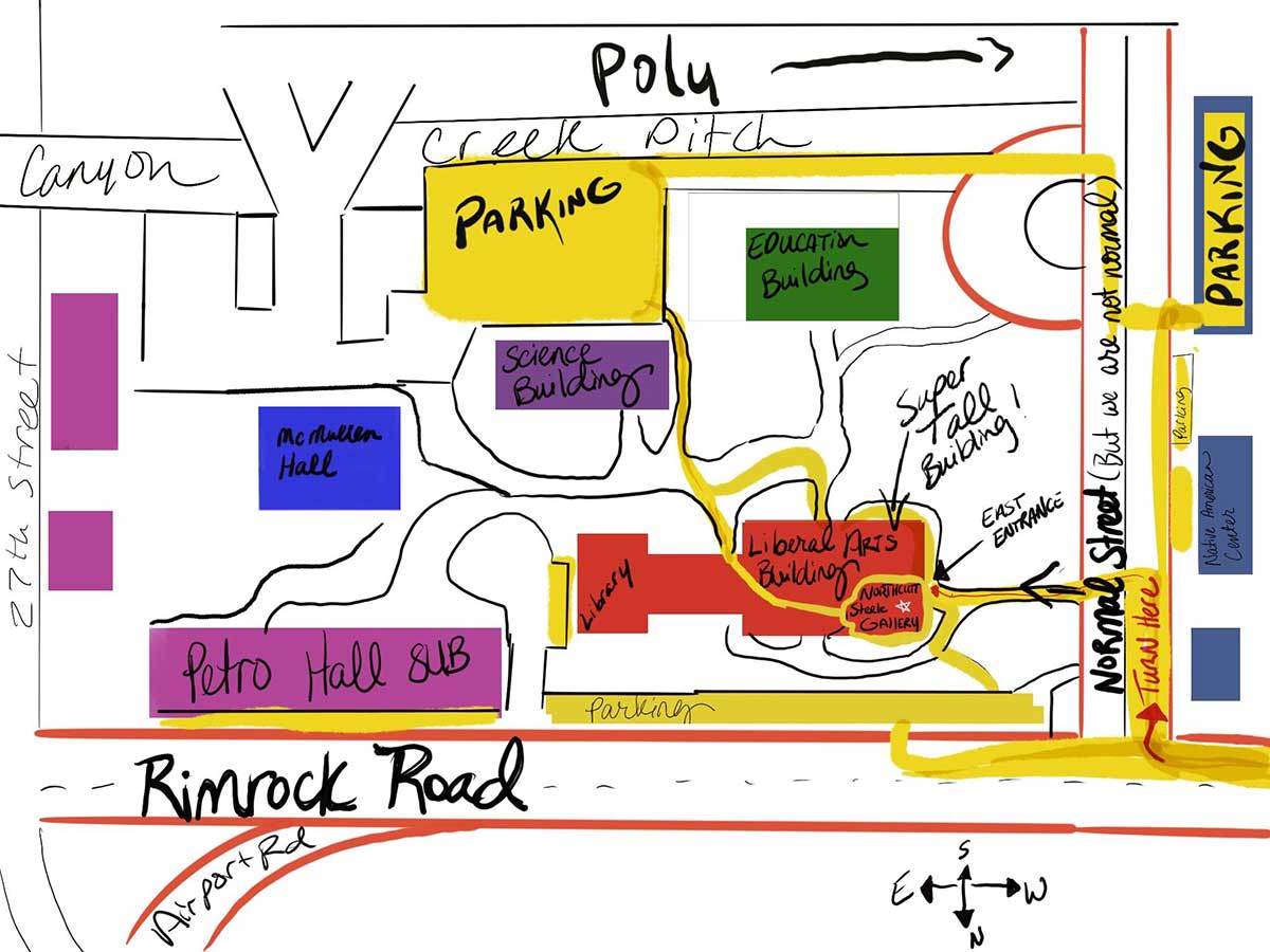 The Northcutt Steele Gallery is located on the first floor of the Liberal Arts building, which is located on the northwest corner of the Montana State University Billings campus. The gallery is open Monday-Friday from 8:00am to 4:00pm. For more information, including a parking map, visit the Northcutt Steele Gallery facebook page. Funded in part by the Associated Students of MSUB.