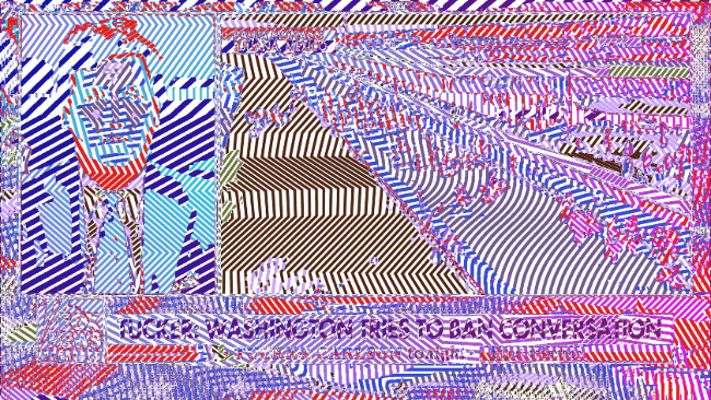 The works, like the title, weaves together how the system of news is both raw entertainment and bleak presentation of our smallness in the vastness of time; through distortion and pattern, the content recedes, revealing the system’s operation.