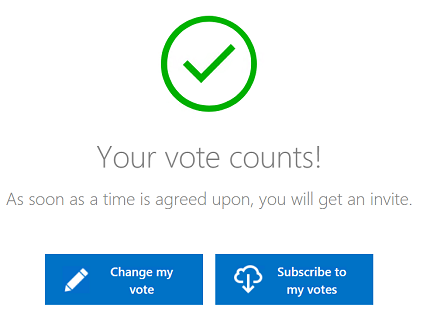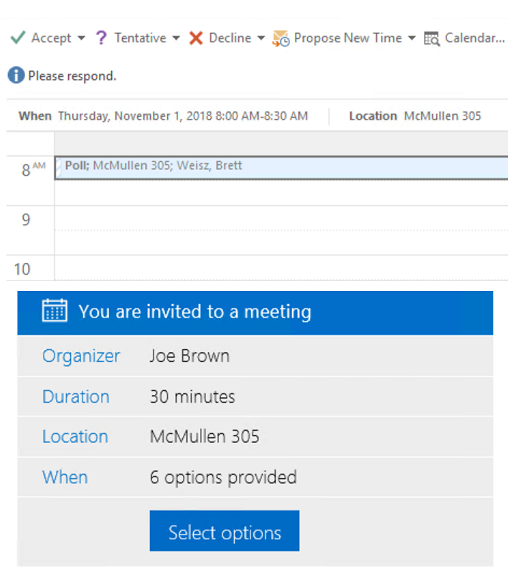 The system will then review all of the votes and schedule a meeting based on the collective availability of all the attendees. Each recipient will receive a meeting invitation via email to the scheduled meeting allowing them to add it to their calendar.