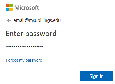 4) You'll then need to log into your Office 365 account by logging in with your MSUB email address and the password you use for your computer or D2L. After entering the information click the Sign in button.