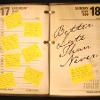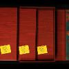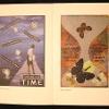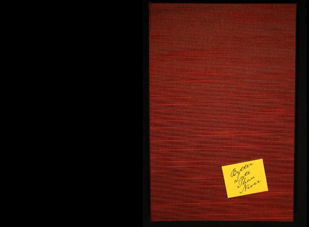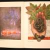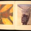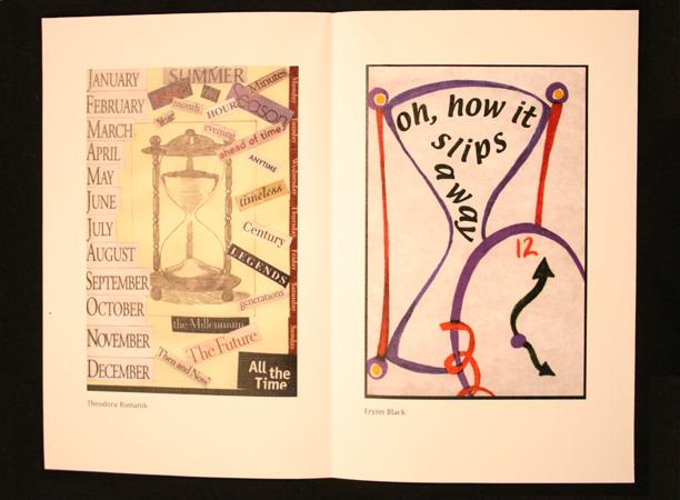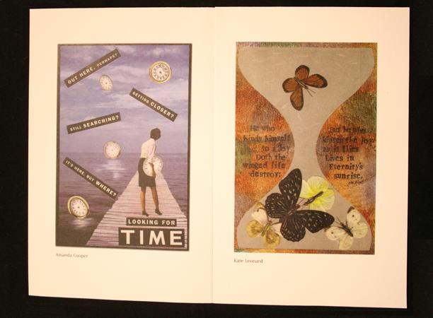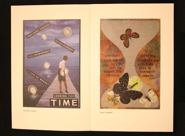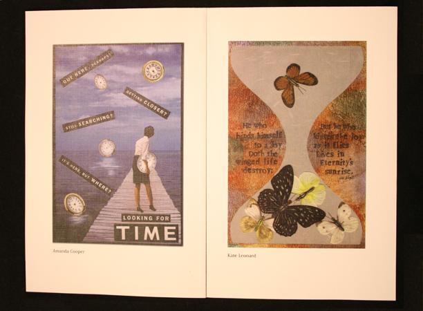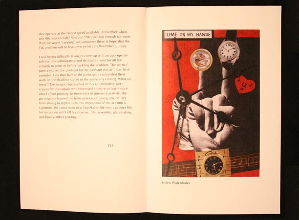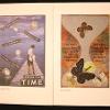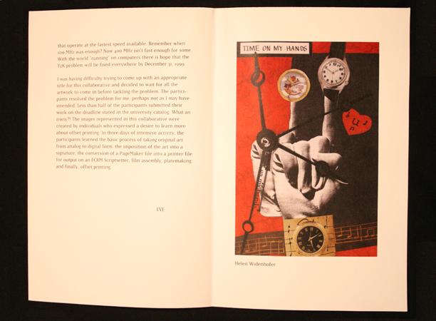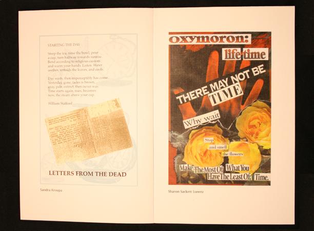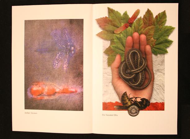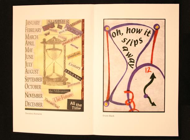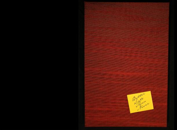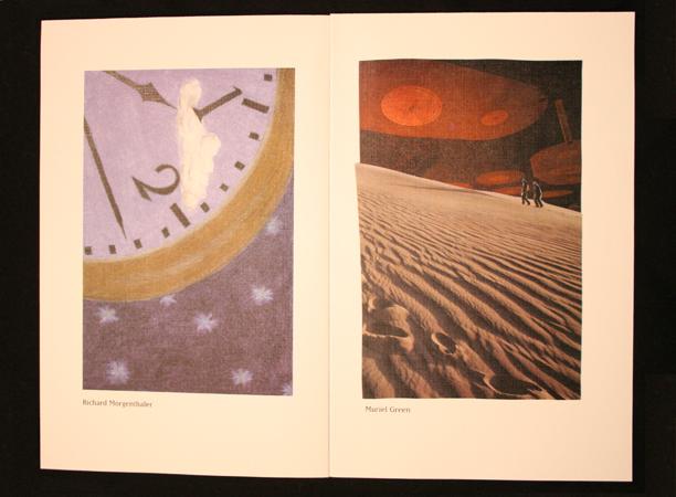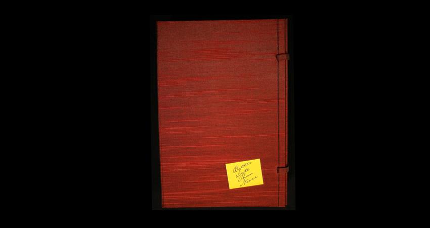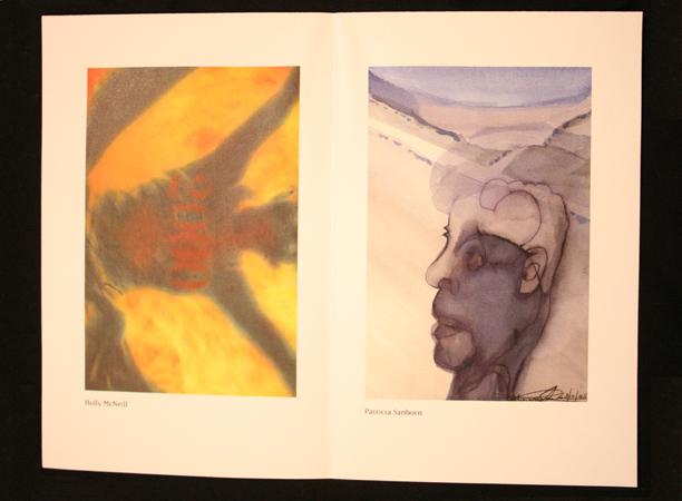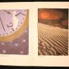 Three separate hard-cover books with loose quarter-folded pages. Each of the three books was printed on a different type of paper, but the series of images are the same in each book. The set was created at the Offset Collaborative Workshop taught by Dr. Elsi Vassdal Ellis at Western Washington University in July 1999. The books and clam style box are covered in red and black woven silk, and each has a yellow square with the title in scripted font in the lower right-hand corner. The interior of the box is lined with green paper embossed with red and gold flowers, and the box top is fastened with two Asian bone clasps on right side. This is #93 of an edition of 130.