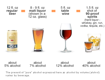 - Drinking at a house party is different than at the bar. At the bar, the drinks are fairly accurate to the serving sizes above. If a friend is pouring you a drink or you are pouring it for yourself, you probably will not/do not measure the serving size. Which is okay! Just make sure you are aware of how much is in your drink for your own safety.