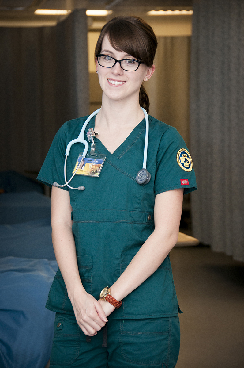 Bottom: Dustin Kelly prepares for her final examination in City College’s nursing