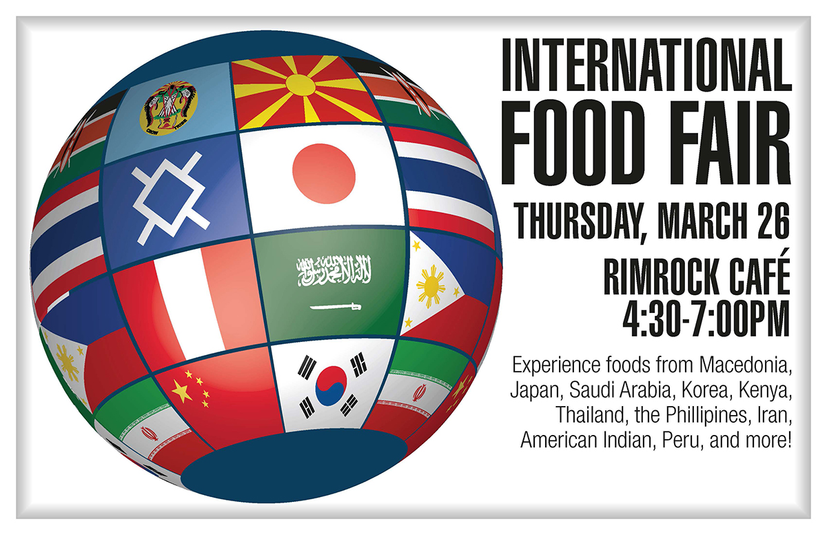 The 12th annual MSUB International Food Fair will be held March 26, from 4:30 to 7 p.m., in the Rimrock Café on the university campus. Open to the public, tickets are $12 for adults, $8 for kids age 5-12, and free to those under 5.